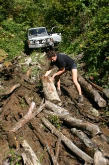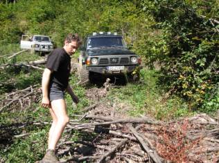 Z jaskini Meziad wyruszamy na podbój terenu, niestety dobrze zapowiadający się szlak kończy się po kilku kilometrach a zastępcza droga kończy się jazdą korytem strumienia. Niestety drogę blokuje kilkunastometrowy porzucony buk, który tarasuje przejazd.