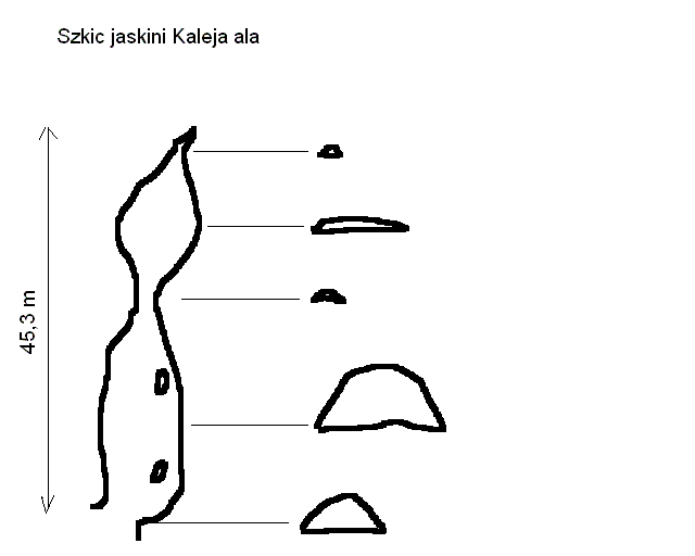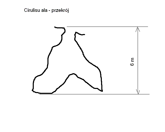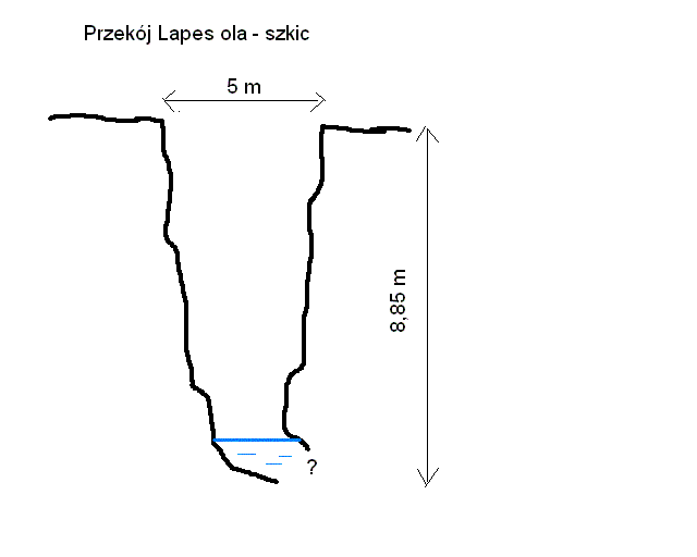 szer (szkic przekroju). Do jaskini musiałem się dostać przy pomocy kawałka